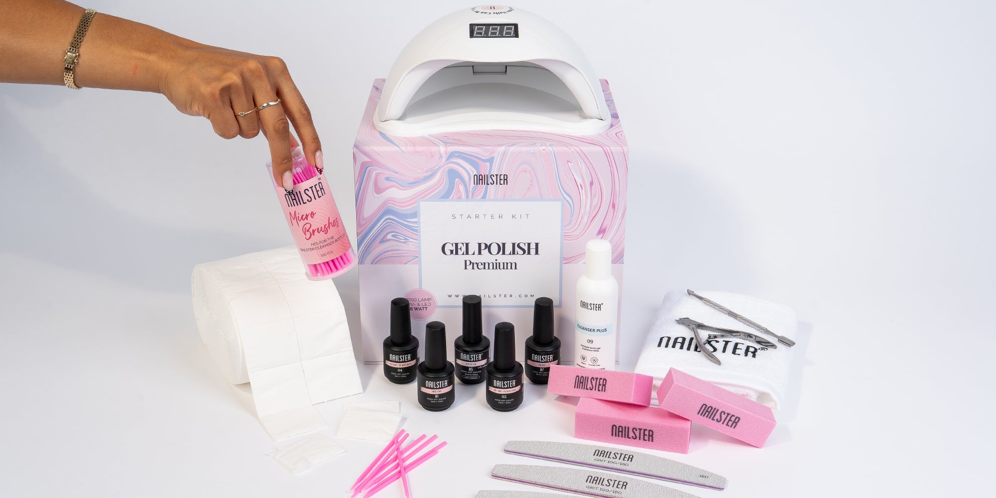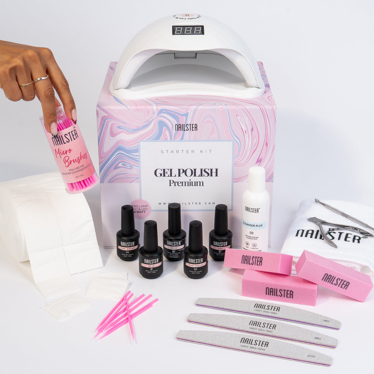 Inneholder alt du trenger for å skape vakre negler hjemme. Legg til akkurat de produktene du ønsker for forsterkning eller forlengelse.
